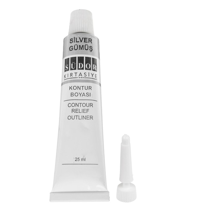 Контур универсальный для всех твердых поверхностей 25 мл, цвет серебрянный снимет все ограничения с вашего творчества и поможет реализовать любые задумки! Благодаря удобной упаковке её можно как использовать дома, так и взять на улицу, а это откроет новые горизонты для любого художника.