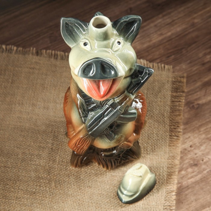 Коньячный набор "Кабан с автоматом" 7 предметов, 1,2 л, цветной