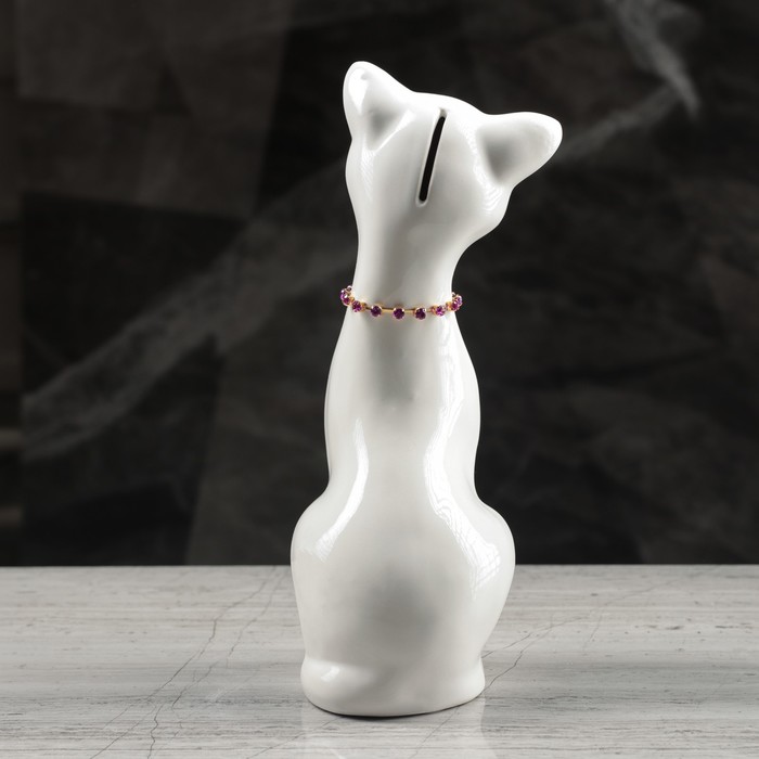 Копилка "Кошка Мария" малая, глазурь, белая с цепочкой