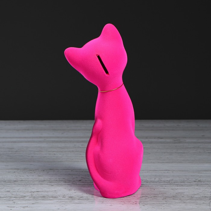 Копилка "Кот Матвей" малая, розовая, флок, микс