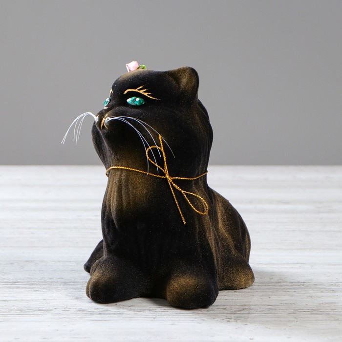 Копилка "Кот Пушистик" флок, чёрно-золотая