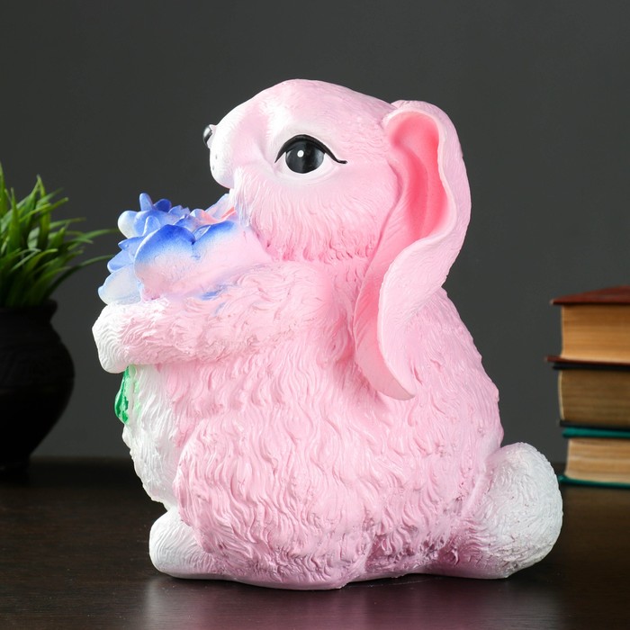 Копилка "Кролик большой с орхидеями" розовый гипс