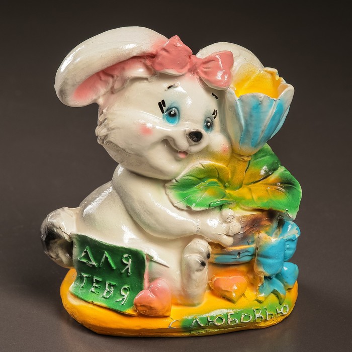 Копилка "Кролик с тюльпаном" 20х17см, МИКС