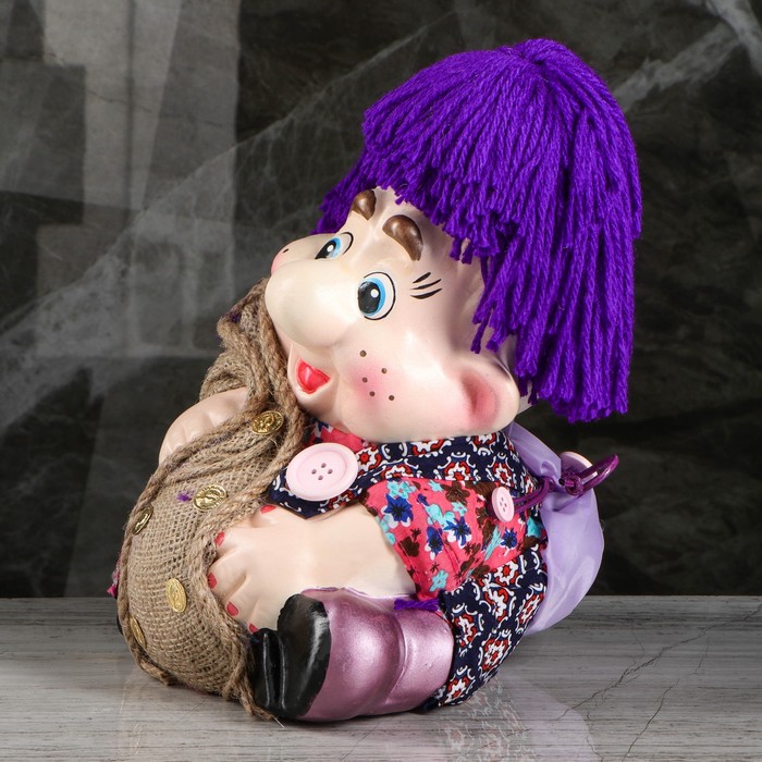 Копилка — универсальный вариант подарка любому человеку, ведь каждый из нас мечтает о какой-то дорогостоящей вещи и откладывает или собирается откладывать деньги на её приобретение. Вместительная Копилка "Кузя с мешком" станет прекрасным хранителем сбережений и украшением интерьера. Она выглядит так ярко и эффектно, что проходя мимо, обязательно захочется забросить пару монет.