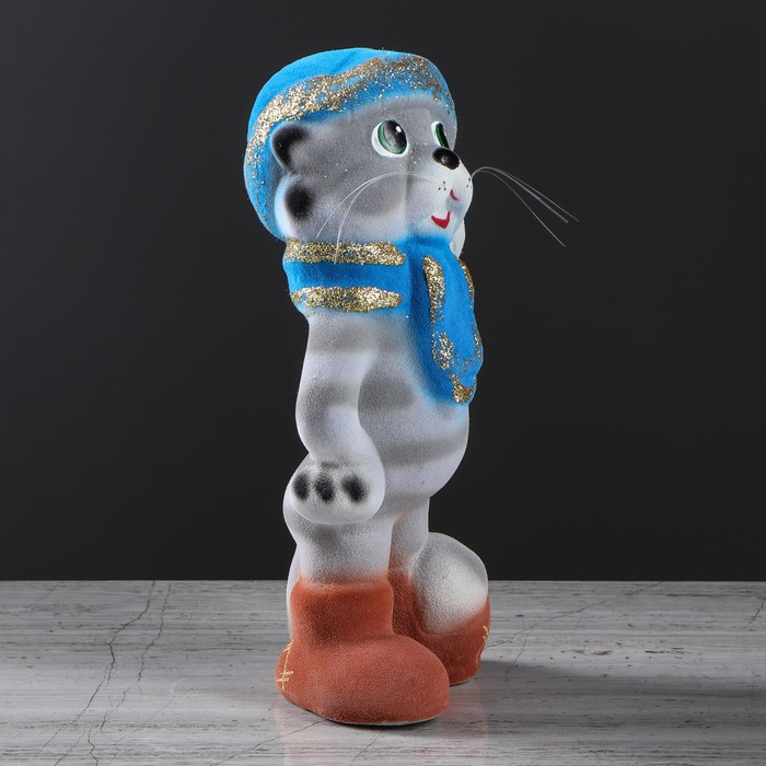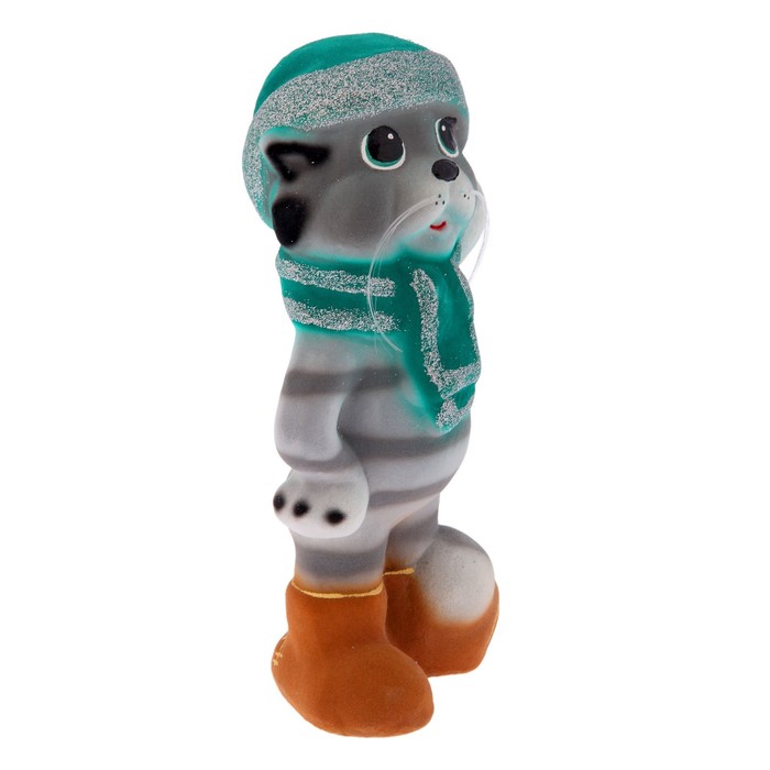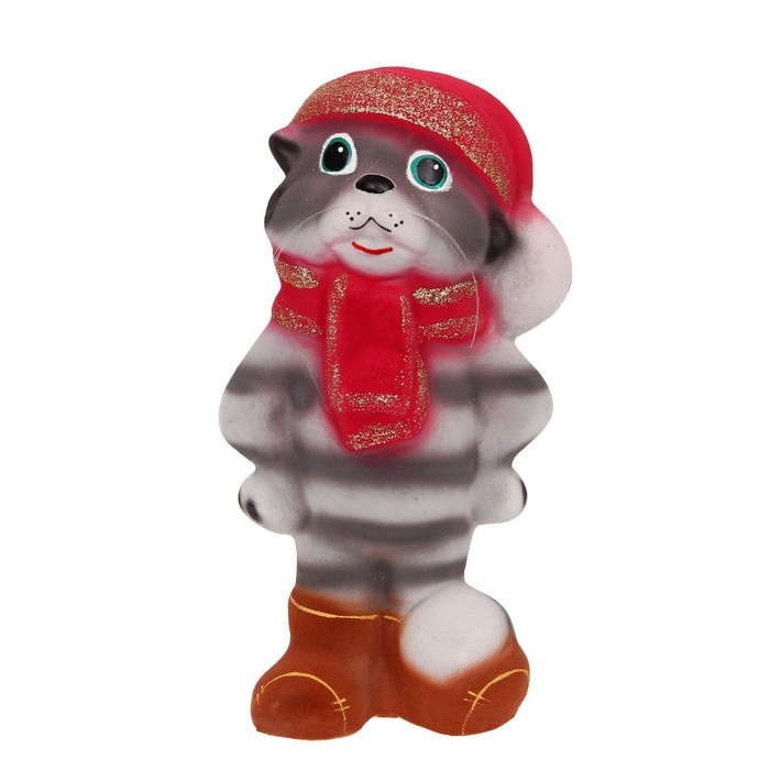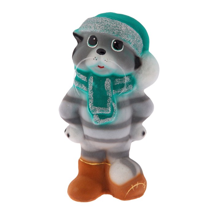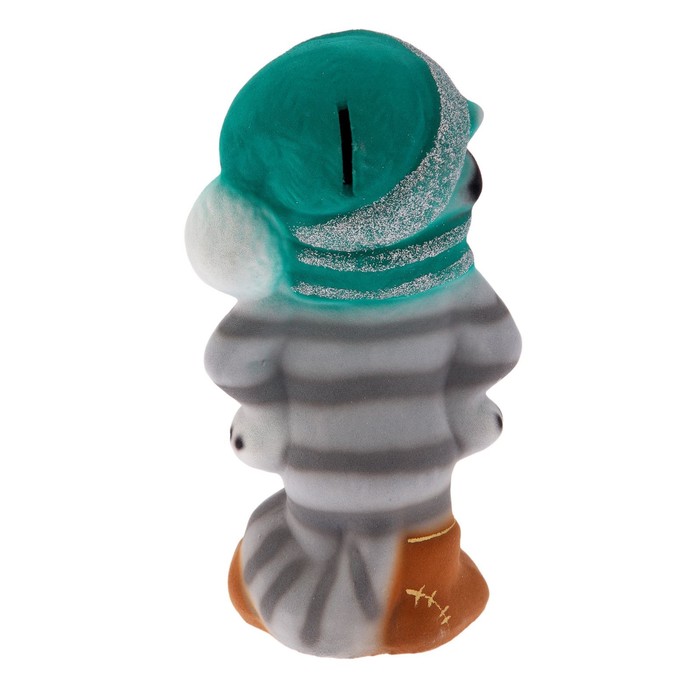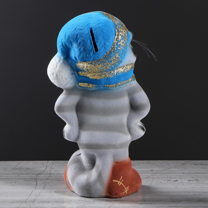 Копилка "Полосатый кот" малая, флок, серая, микс