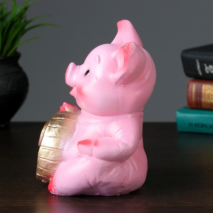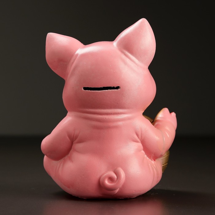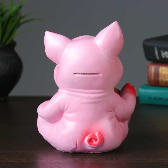 Копилка "Поросенок с монетой "РУБЛЬ" розовый 18см