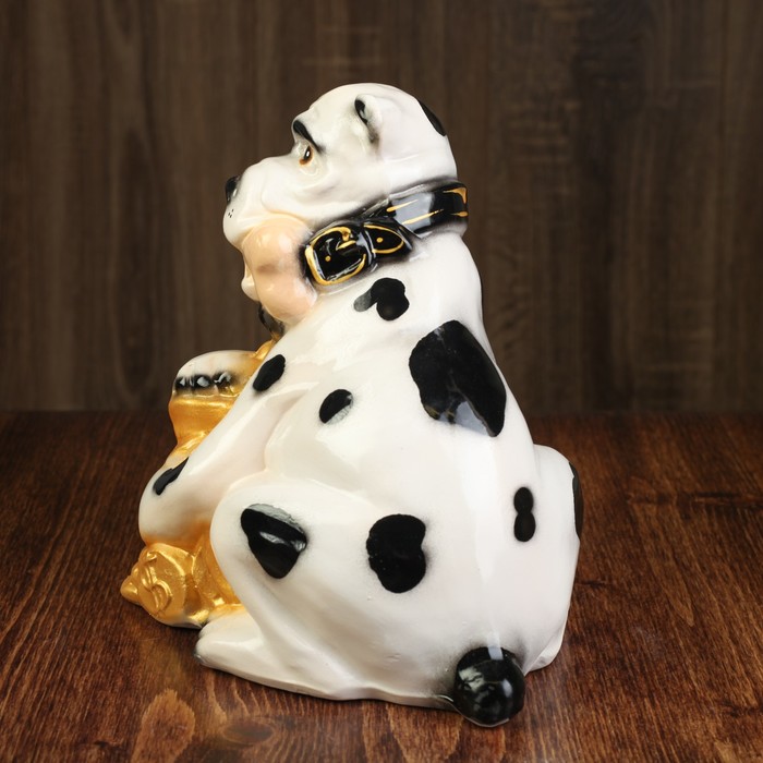 Копилка — универсальный вариант подарка любому человеку, ведь каждый из нас мечтает о какой-то дорогостоящей вещи и откладывает или собирается откладывать деньги на её приобретение. Вместительная Копилка "Собака на монетах", глянец станет прекрасным хранителем сбережений и украшением интерьера. Она выглядит так ярко и эффектно, что проходя мимо, обязательно захочется забросить пару монет.