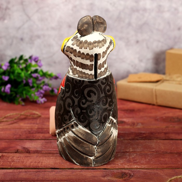 Копилка — универсальный вариант подарка любому человеку, ведь каждый из нас мечтает о какой-то дорогостоящей вещи и откладывает или собирается откладывать деньги на её приобретение. Вместительная Копилка "Учёный ворон", микс станет прекрасным хранителем сбережений и украшением интерьера. Она выглядит так ярко и эффектно, что проходя мимо, обязательно захочется забросить пару монет.