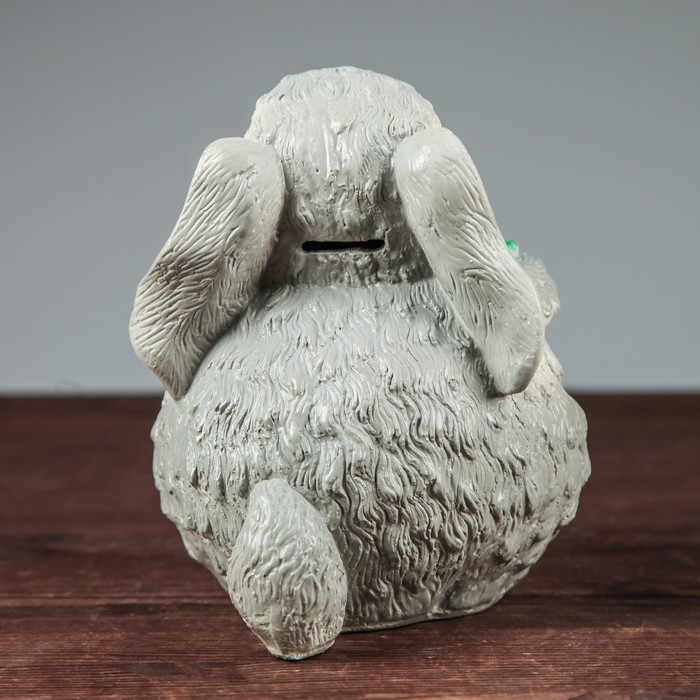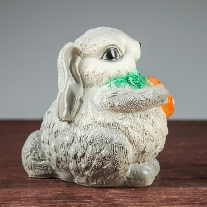 Копилка "Заяц с морковкой" серая