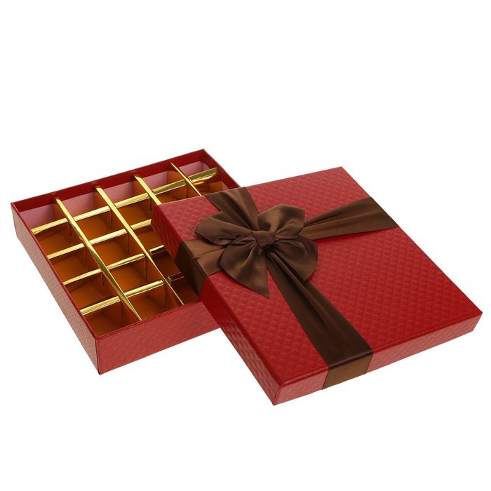 Коробка подарочная для конфет, красный, 18,5 х 18,5 х 4 см
