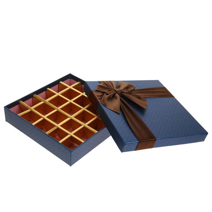 Коробка подарочная для конфет, синий, 18,5 х 18,5 х 4 см