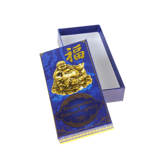 Если вы относитесь к поклонникам древнекитайской и японской символики и философии, тогда вам непременно понравится коробка подарочная «Достатка и благополучия». Говорят, если потереть животик маленького Хотея, исполнится заветное желание. Поэтому мы решили поместить его на принт изделия, чтобы все мечты становились реальностью! Она сочетает в себе современные тенденции в оформлении подарков и нестандартный дизайн самой упаковки.