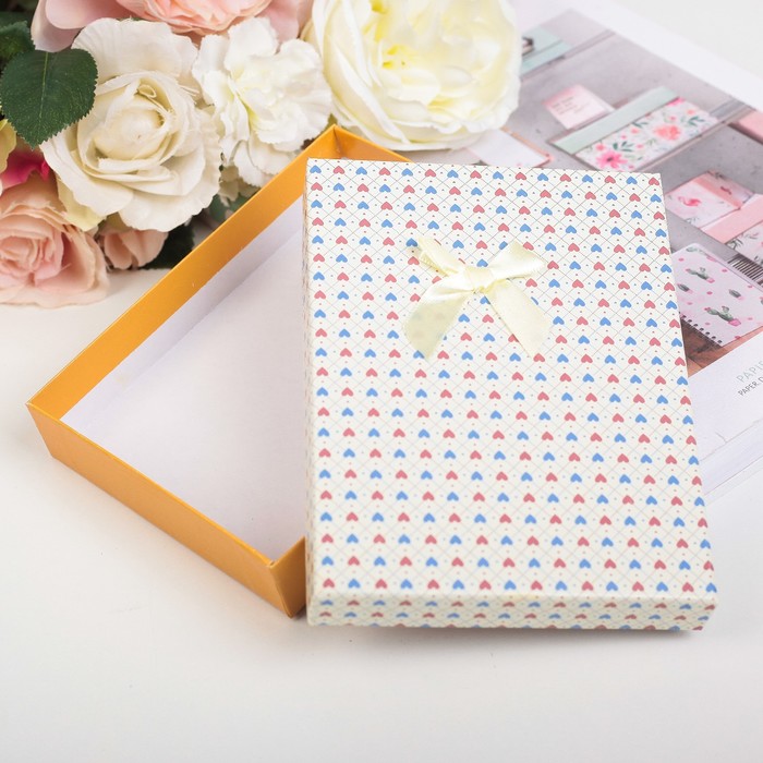 Коробка подарочная "Сердца" 16 х 12 х 3 см, цвет ванильный