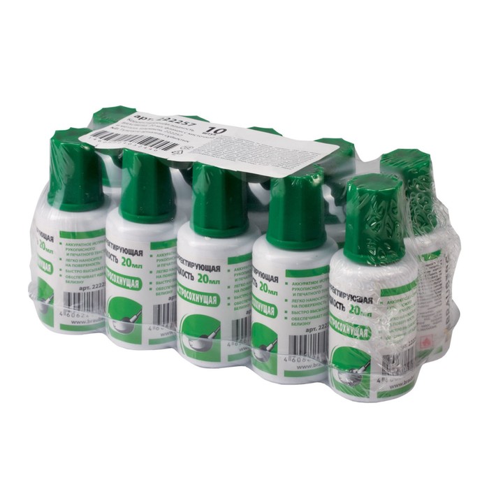 Корректирующая жидкость 20 мл BRAUBERG Energy, быстросохнущая основа, с кисточкой