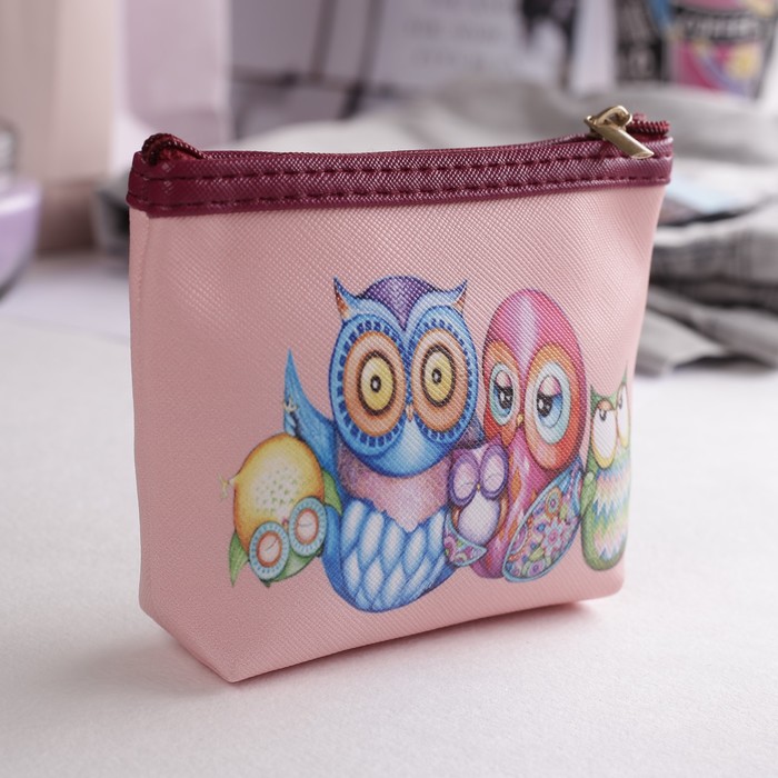 Кошелёк детский на молнии "Совёнок", 1 отдел, цвет розовый