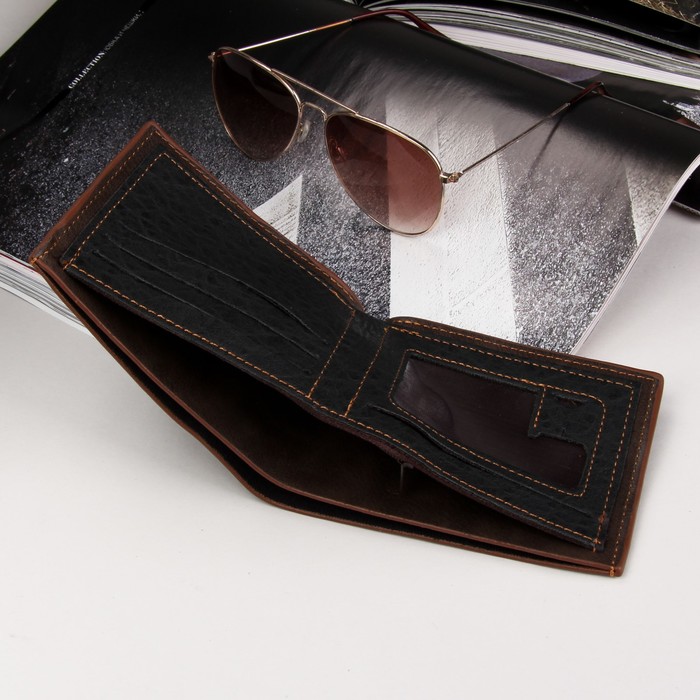 Кошелёк мужской, 2 отдела, для карт, для монет, для sim-карты, цвет чёрный