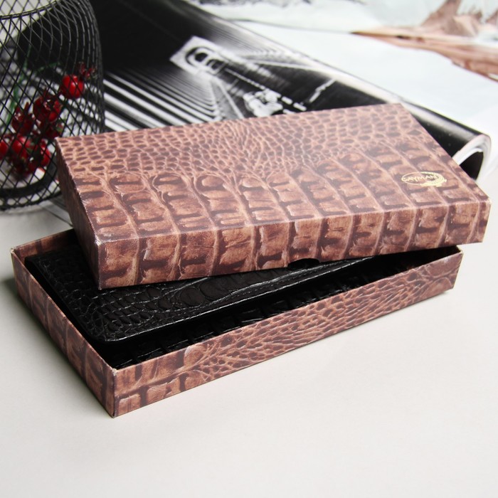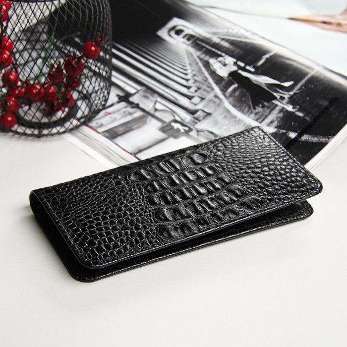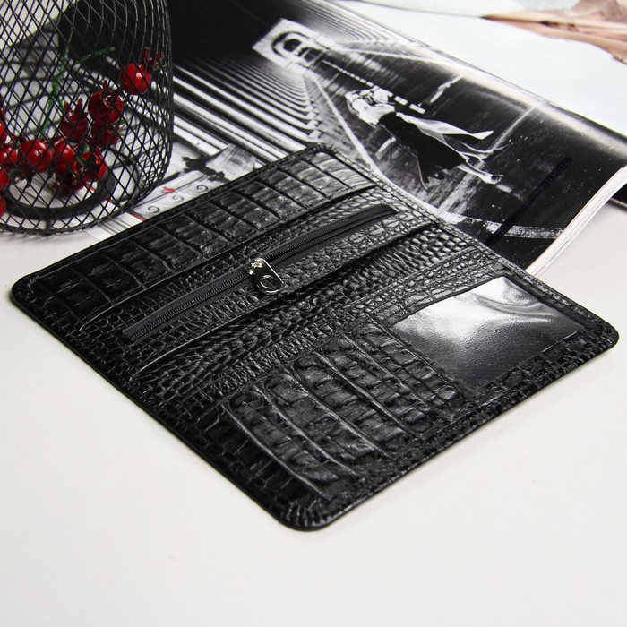 Кошелёк мужской, 2 отдела, для карт, для монет, крокодил черный