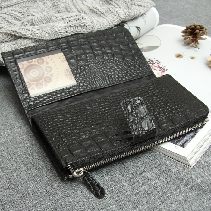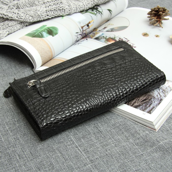 Кошелёк мужской, 2 отдела, для карт, для монет, наружный карман, крокодил, цвет чёрный