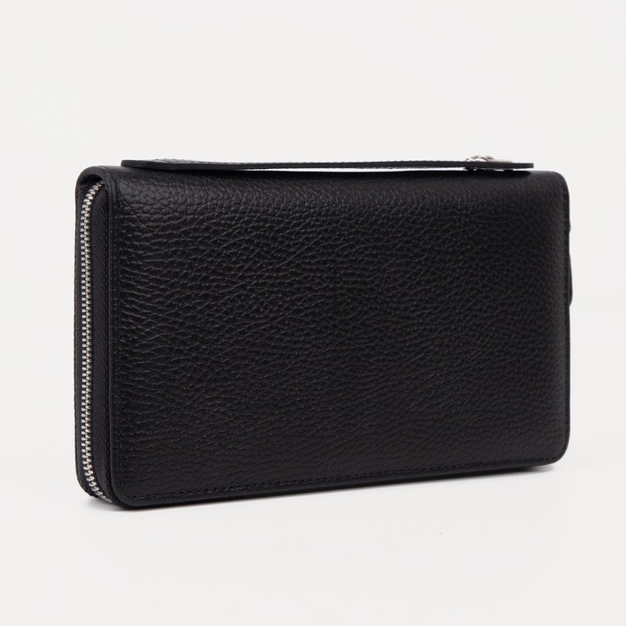 Кошелёк мужской, 2 отдела, для кредиток, для монет, ручка, флотер, цвет чёрный
