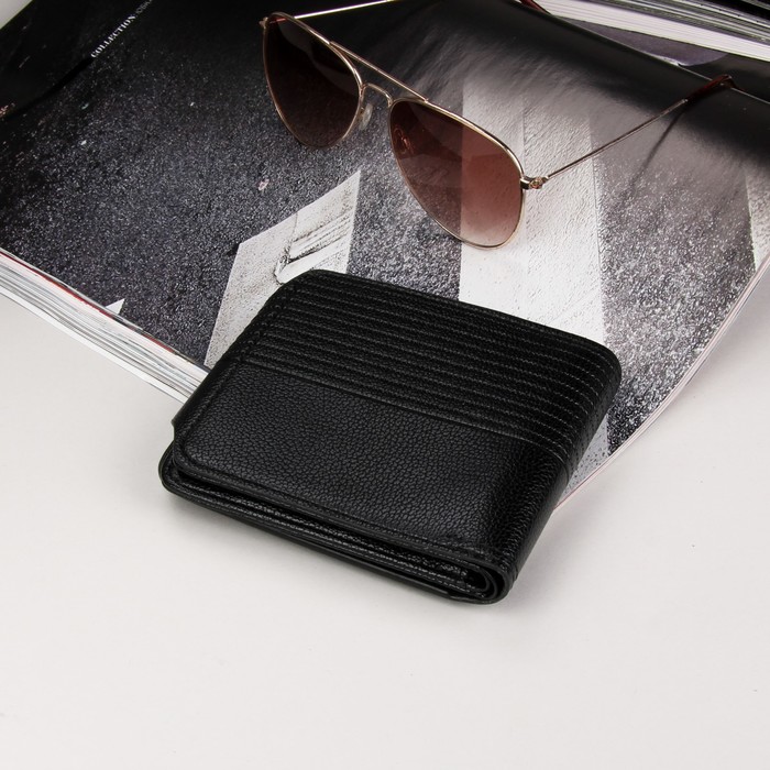 Кошелёк мужской, 2 отдела, для монет, для карт, цвет чёрный