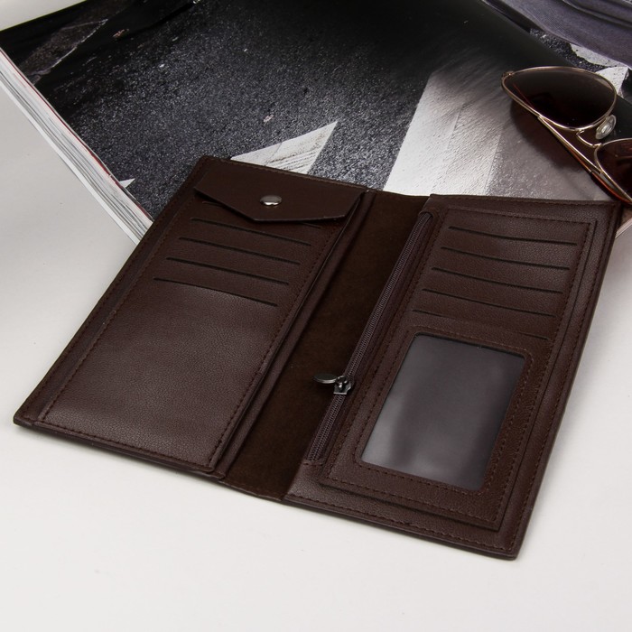 Кошелёк мужской, 2 отдела, для монет, для карт, цвет коричневый