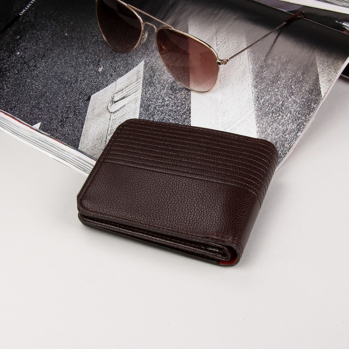 Кошелёк мужской, 2 отдела, для монет, для карт, цвет коричневый