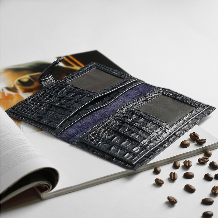 Кошелёк мужской, 4 отдела, для карт, монет, кайман, цвет синий