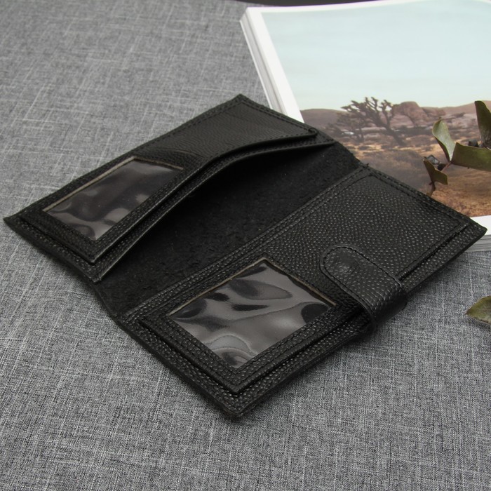 Кошелёк мужской, 4 отдела, для карт, монет, с хлястиком, цвет чёрный