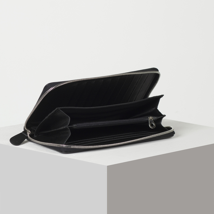 Кошелек мужской с ручкой, 2 отдела, для кредиток, для монет, сафьян, цвет чёрный матовый