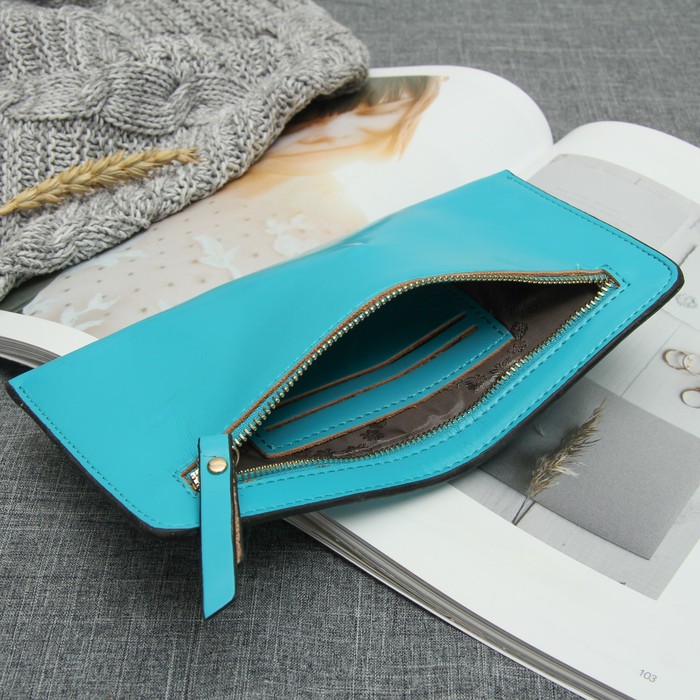 Кошелёк женский, 1 отдел, на молнии, цвет голубой