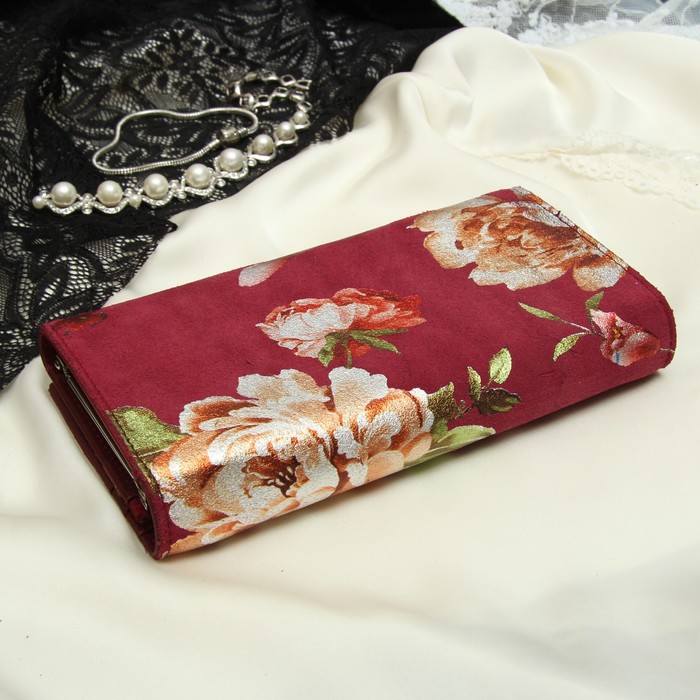Кошелёк женский, 2 отдела рамка, 3 отдела, для карт, для монет, цвет бордовый