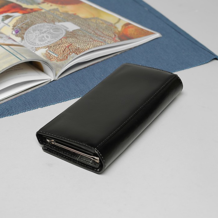 Кошелёк женский, 2 отдела рамка, 4 отдела, для карт, для монет, цвет чёрный