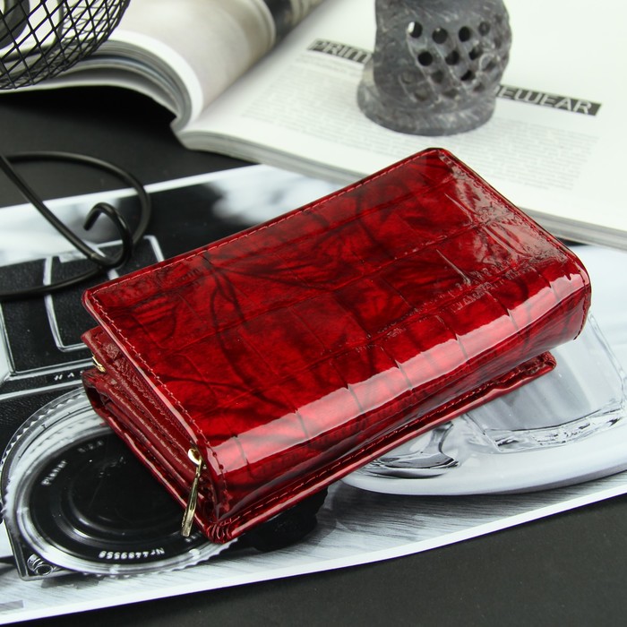 Кошелёк женский, 3 отдела, для карт, 2 отд рамка, 2 отдела на молнии, цвет красный