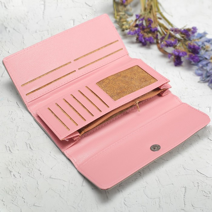 Кошелёк женский, 3 отдела, для карт, монет, цвет бежевый