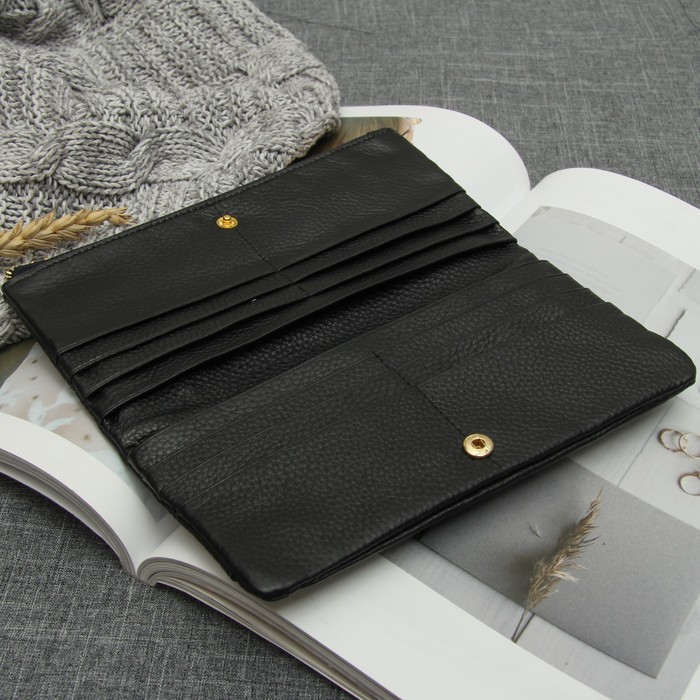 Кошелёк женский "Дамиана", 3 отдела, отдел для кредиток, наружный карман, цвет чёрный