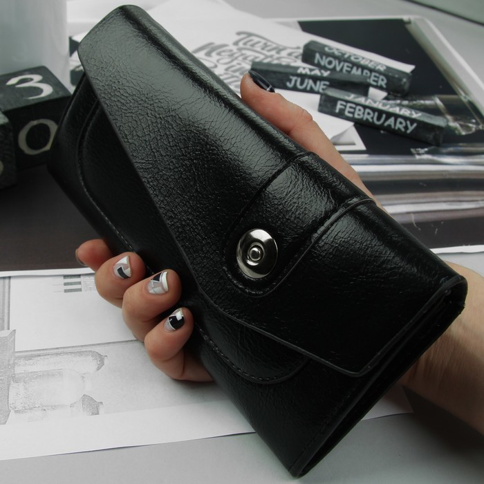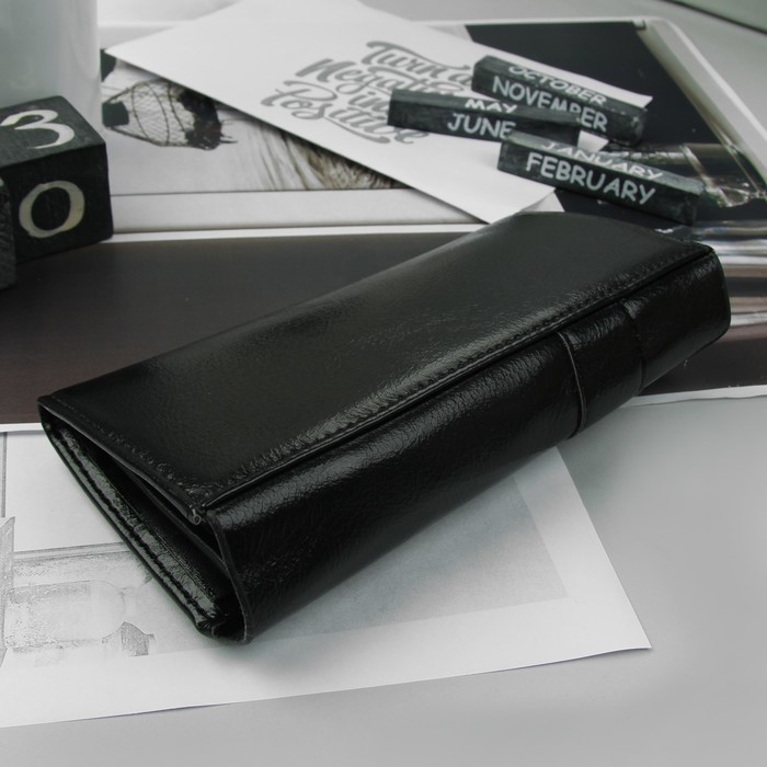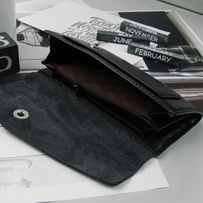 Кошелёк женский на клапане, 3 отдела, для карт, для монет, цвет чёрный