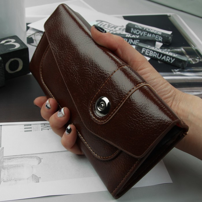 Кошелёк женский на клапане, 3 отдела, для карт, для монет, цвет кофе