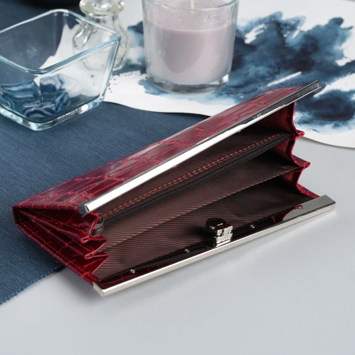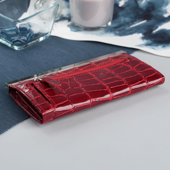 Кошелёк женский на застёжке, 4 отдела, отдел для карт, отдел для монет, скат красный
