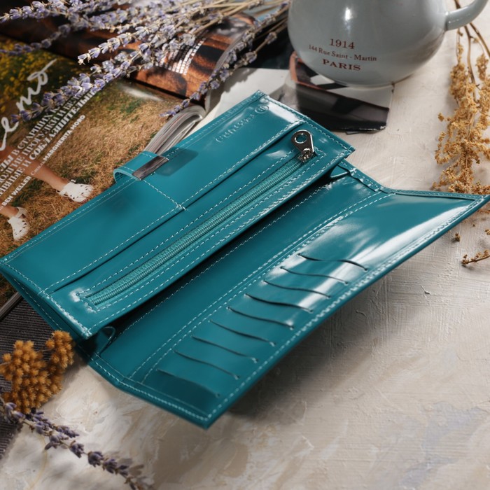 Кошелёк женский, отдел, для карт, для монет, шик, цвет бирюзовый