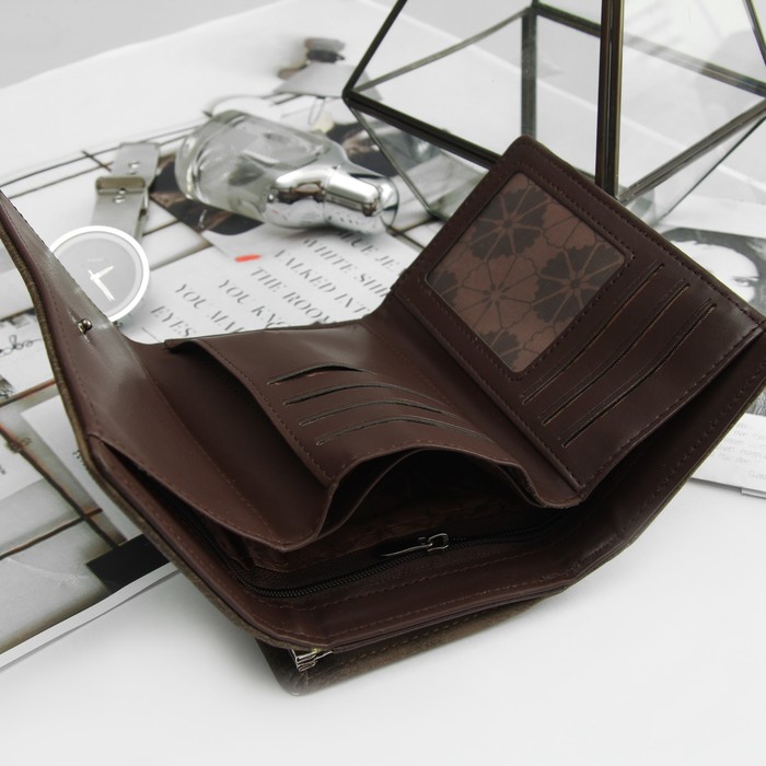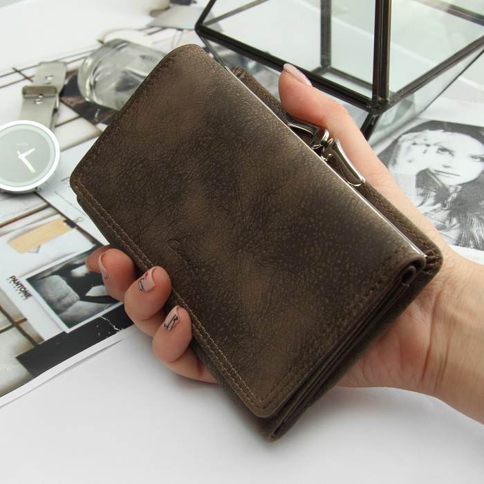 Кошелёк женский, отдел рамка, 2 отдела, для карт, на клапане, цвет коричневый