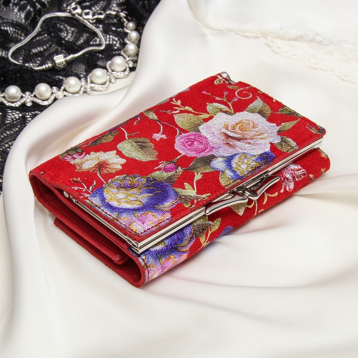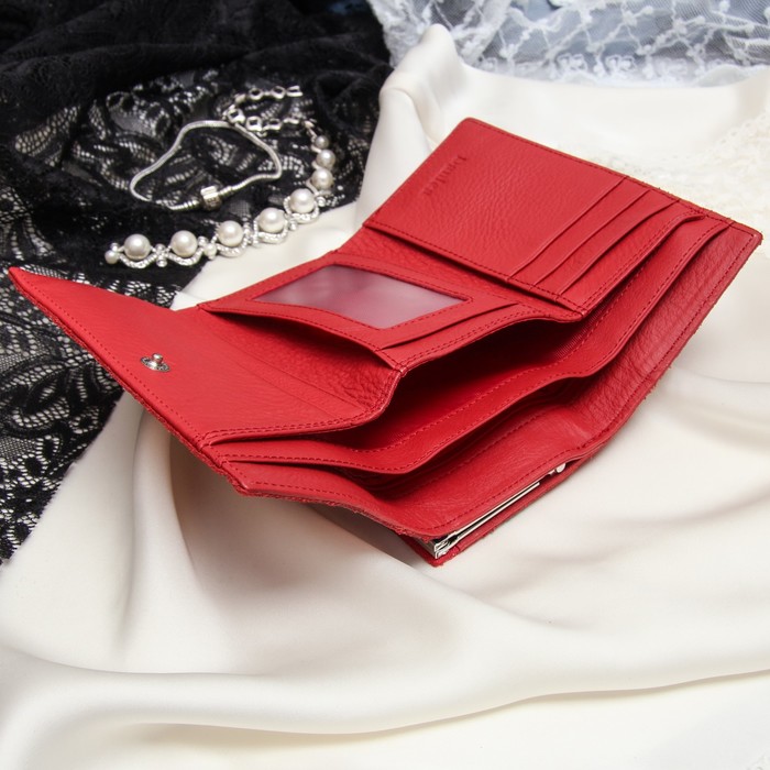 Кошелёк женский, отдел рамка, 3 отдела, для карт, для монет, цвет красный