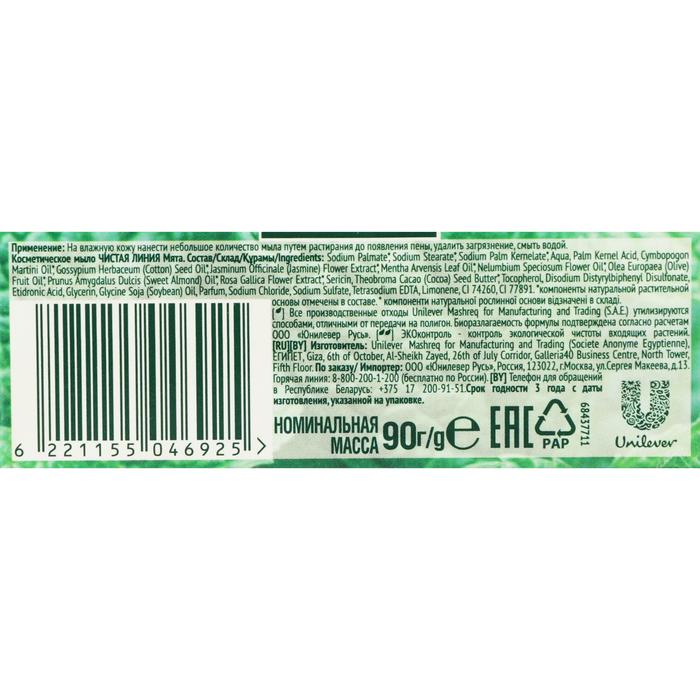 Косметическое мыло Чистая линия Мята, 90 г