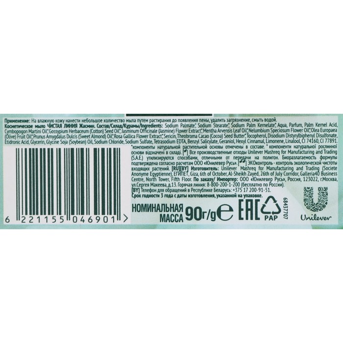 Косметическое мыло Чистая линия Жасмин, 90 г