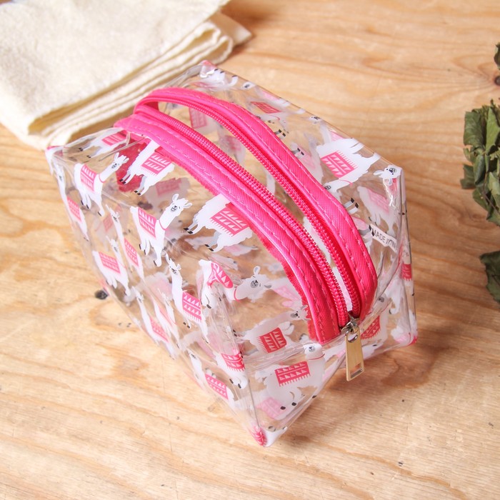 Косметичка банная на молнии "Ламы", 1 отдел, цвет розовый