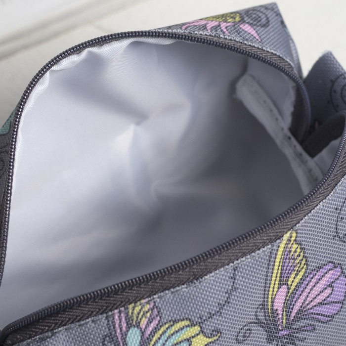 Косметичка дорожная «Бабочки», 1 отдел на молнии, цвет серый