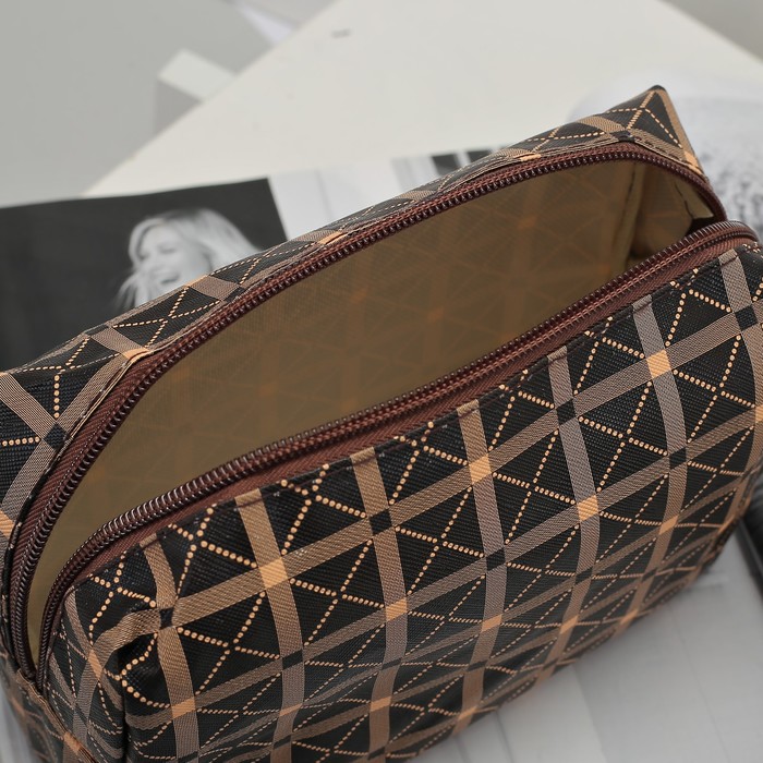Косметичка дорожная "Клетка", отдел на молнии, с ручкой, цвет кофейный