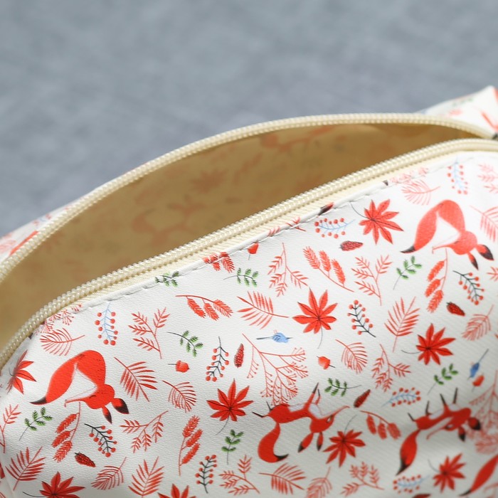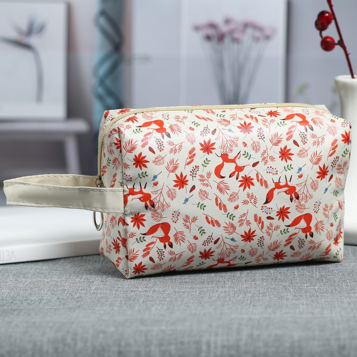 Косметичка дорожная «Лисички», отдел на молнии, ручка, цвет бежевый