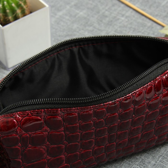 Косметичка дорожная на молнии, крокодил, цвет бордовый