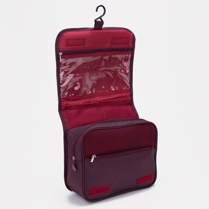 Косметичка дорожная "Путешествие", 2 отдела с карманами на липучке, крючок, цвет бордовый