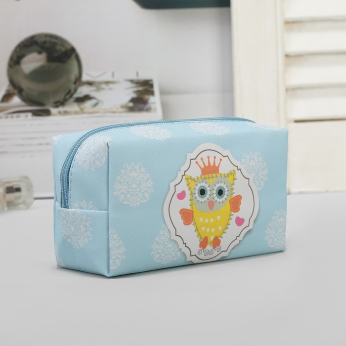 Косметичка дорожная "Совёнок", отдел на молнии, ручка, цвет голубой